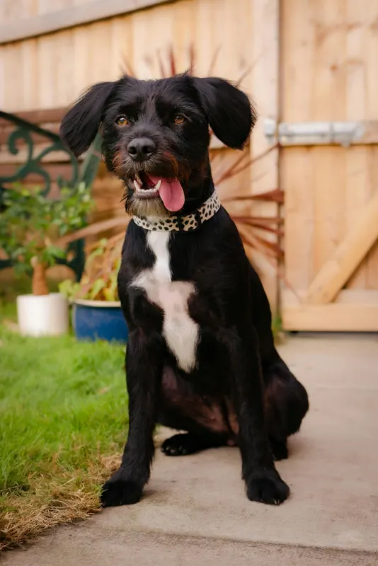Ihr glänzendes Fell wirkt wie Samt oder Satin, mal kurz und edel wie ein Smoking, mal wuschelig wie eine wilde Löwenmähne. Dazu kommen leuchtende Augen, die vor Lebensfreude sprühen und jedes Herz erobern. Mit einem bunten Halsband entsteht ein starker Kontrast, der sofort ins Auge fällt – Schwarz macht ihre Persönlichkeit erst recht sichtbar.